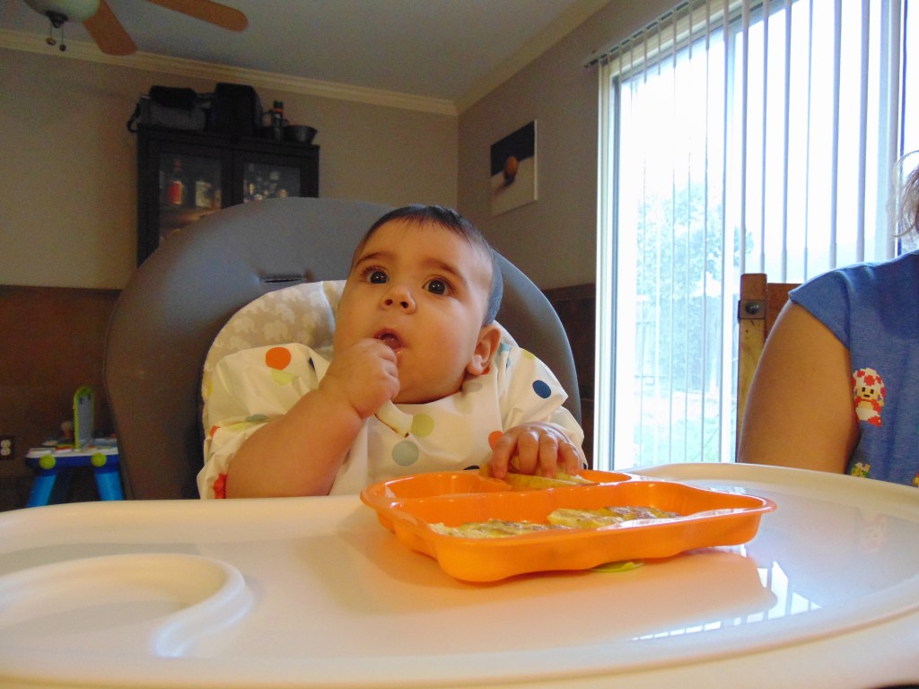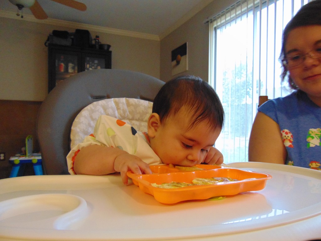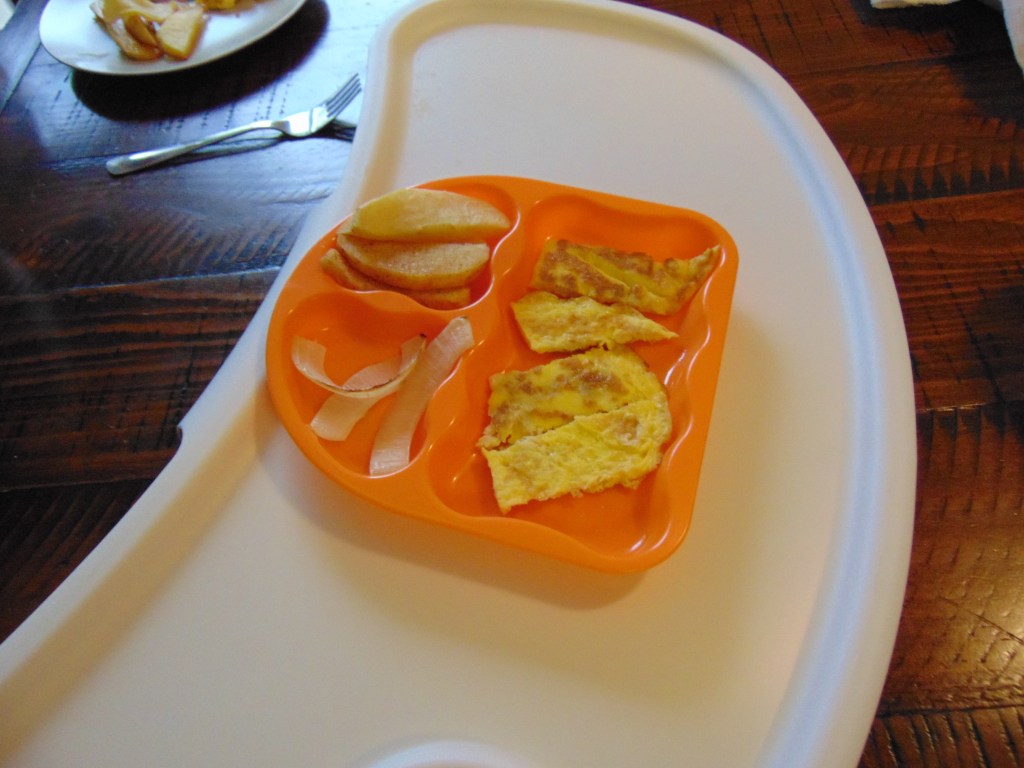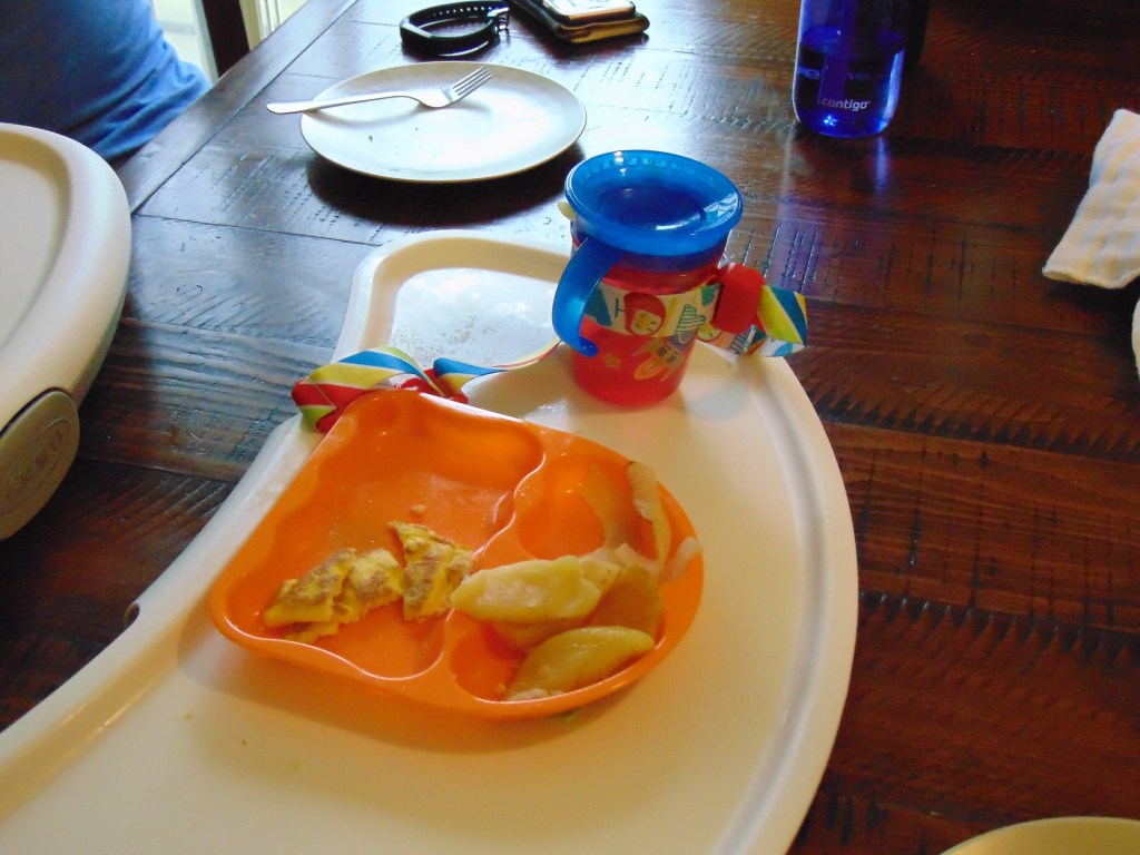 Today Malina did not really do much eating of her eggs as a majority of it was tossed around or thrown to the dog. I am uncertain if that was due to her original reaction to the omelet egg from Saturday or just because of how she was behaving this morning.
