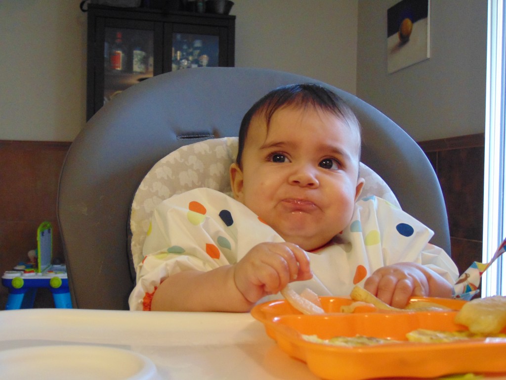 Today Malina had a more difficult time with the slippery foods and she also seemed less interested in it all, preferring her sippy cup of water.