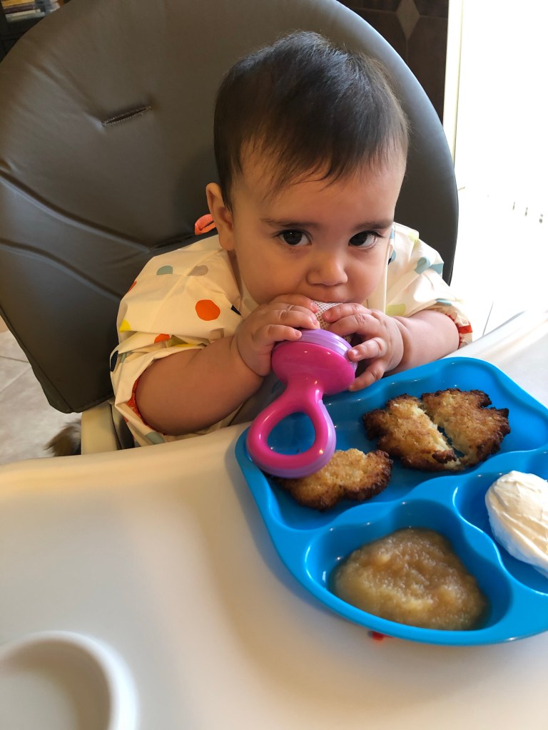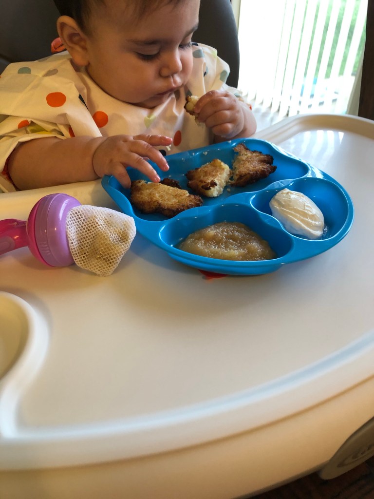 I feel good about this meal though. It might look sugar heavy but the only added sugar was 20g in the batter mix and she didn’t get all of that. Then whatever natural sugars that were in the berries. So I say it’s fine.