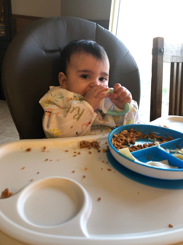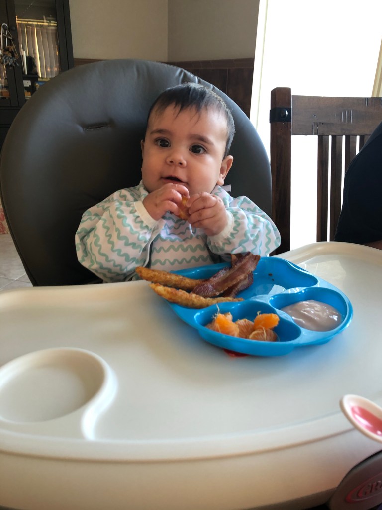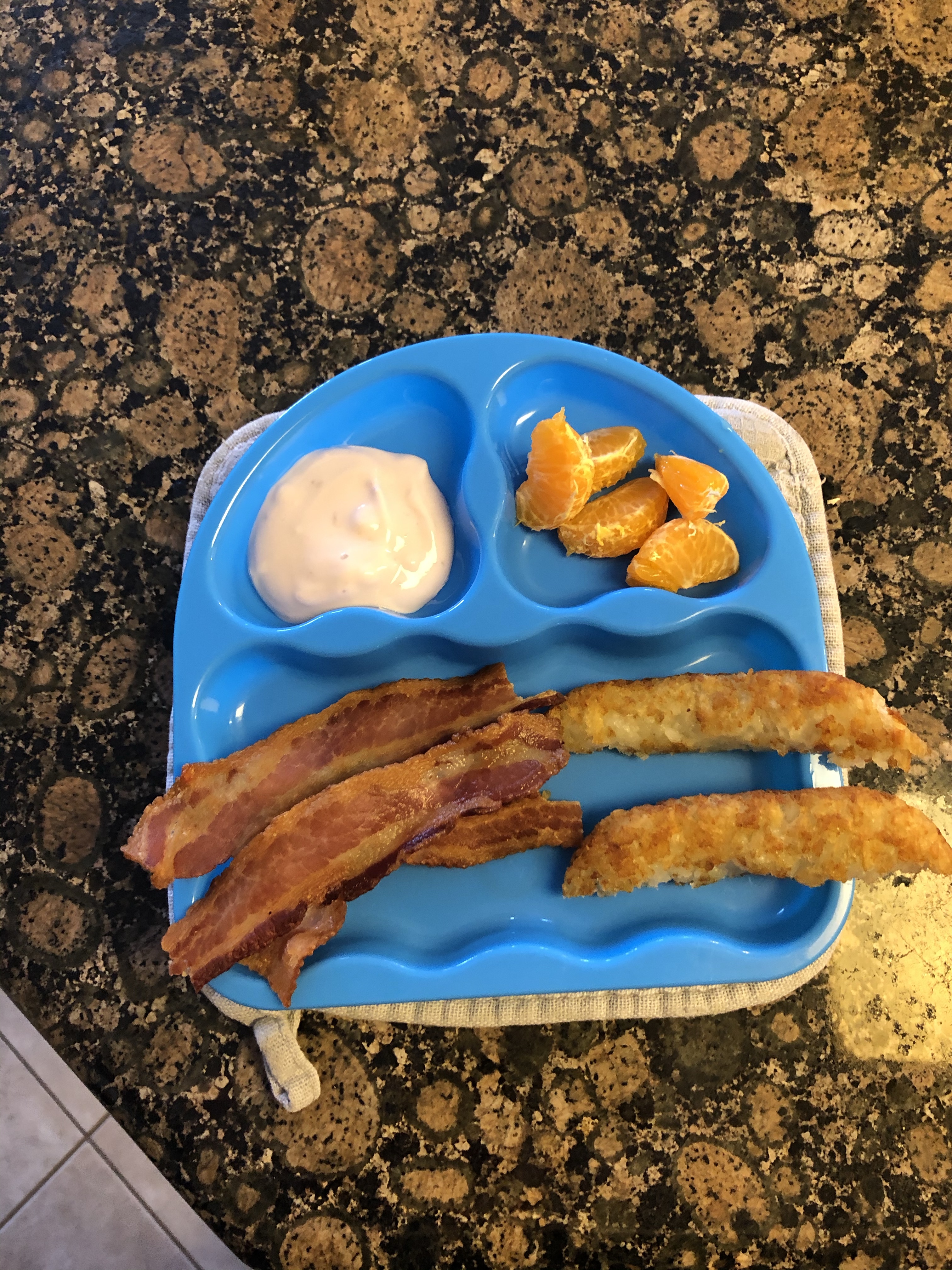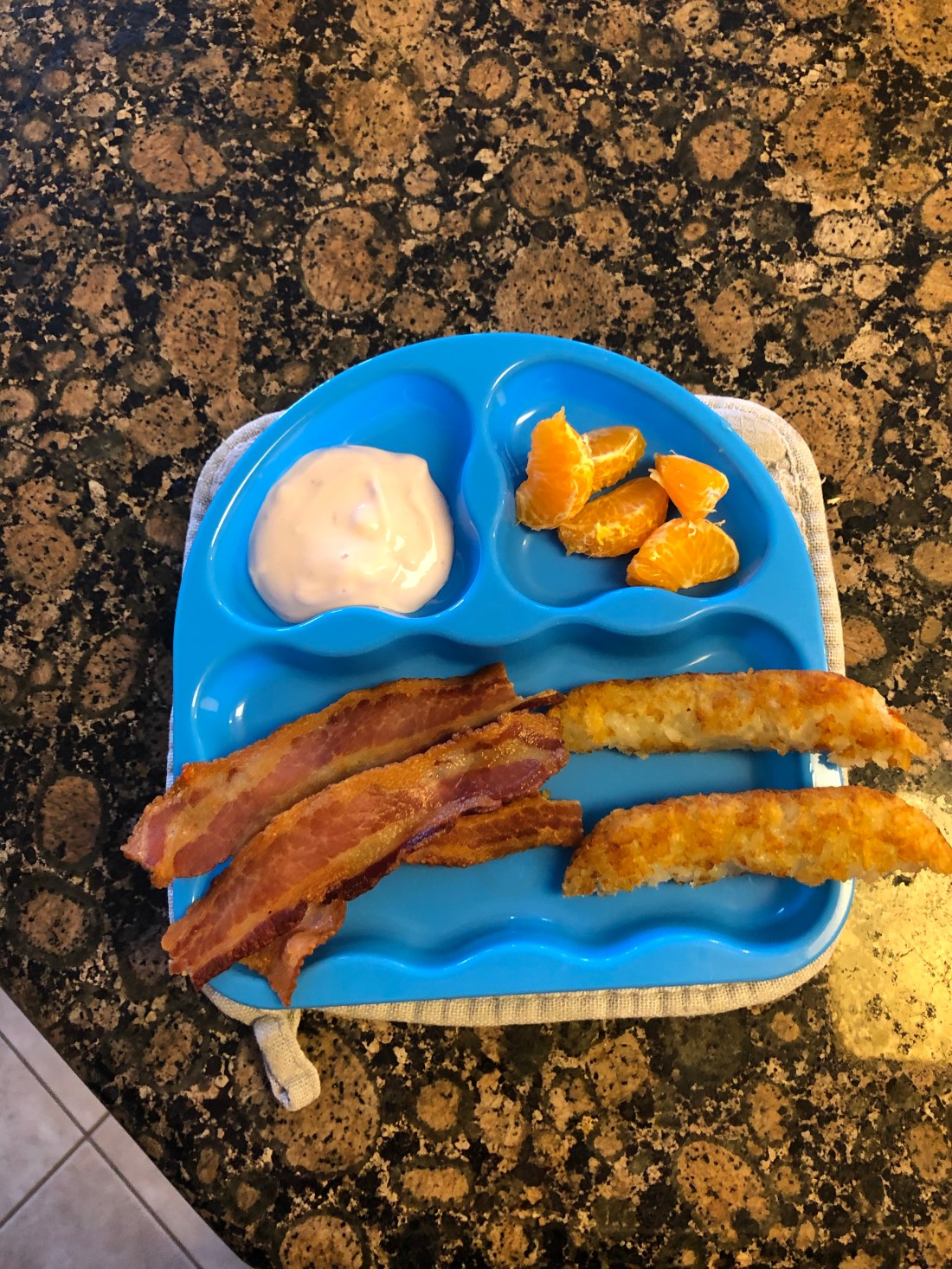 So today, everything went over well with Malina. She tried bacon and hash browns for the first time. She seems to like crunchy things as well and that was good to learn. This whole thing is an adventure for Malina but a learning process for me and so far I feel like it’s gone well.