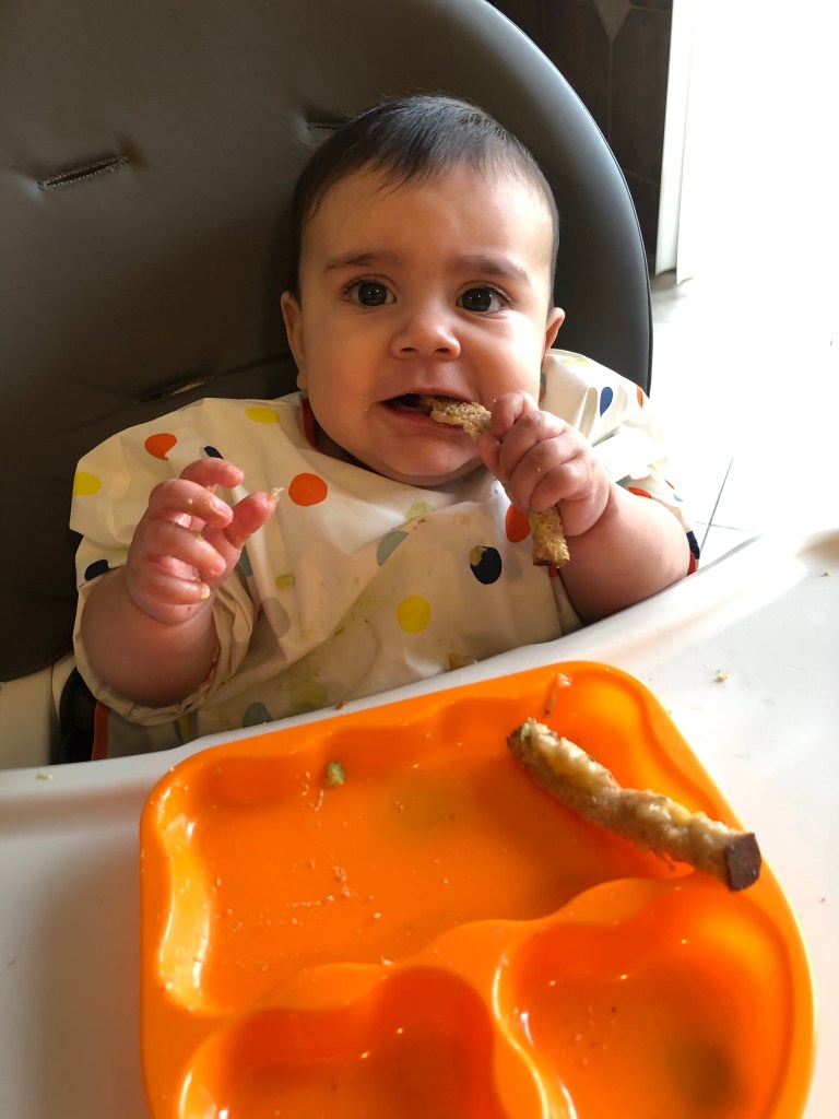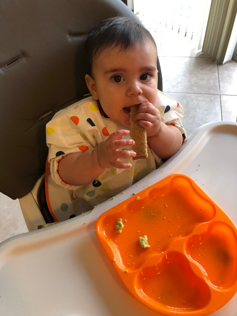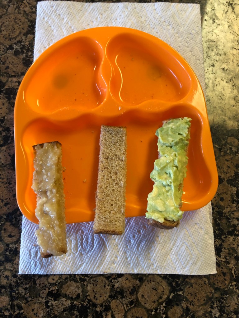 Today was a good day for her breakfast. She ate some of everything and seemed to really like the raspberries and vegetable nests. I’m going to have to go back over what she’s been offered vs what she’s tried and make sure we repeat what we need to and mark off what she’s eaten. I’ll probably make a summary post when we get to the end of our first month and sometime before then make a post on our goal of 100 foods before one as well as explain what that is. But for now, mama needs to relax.
